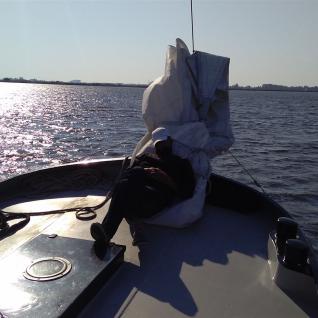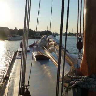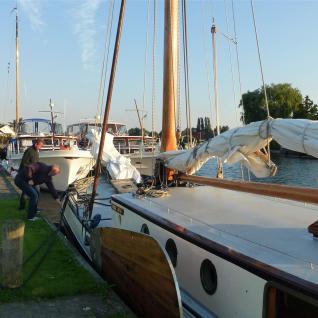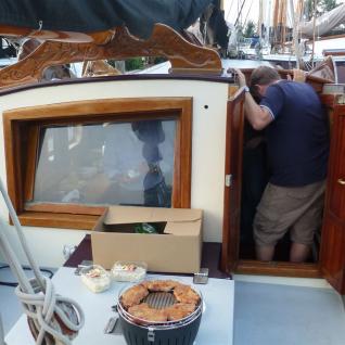 Auf dem Weg zum Schiff kauften wir in einem Supermarkt ganz in der Nähe schnell noch die wesentlichen Lebensmittel für den Turn ein. Segeln macht schließlich hungrig und durstig. Gegen 17:00 Uhr übernahmen wir dann das Schiff. Nach Einräumen des Einkaufes und Beziehen der Kojen war es bereits zu spät, um den Hafen noch zu verlassen. Also noch genügend Zeit, um grundlegende Dinge bezüglich des Handlings eines Plattbodenschiffs zu besprechen. Den ersten Abend ließen wir mit einem kleinen Barbecue und einem dazu gehörendem gepflegtem Bier ausklingen. Schließlich sollte es am anderen Morgen zeitig los gehen.